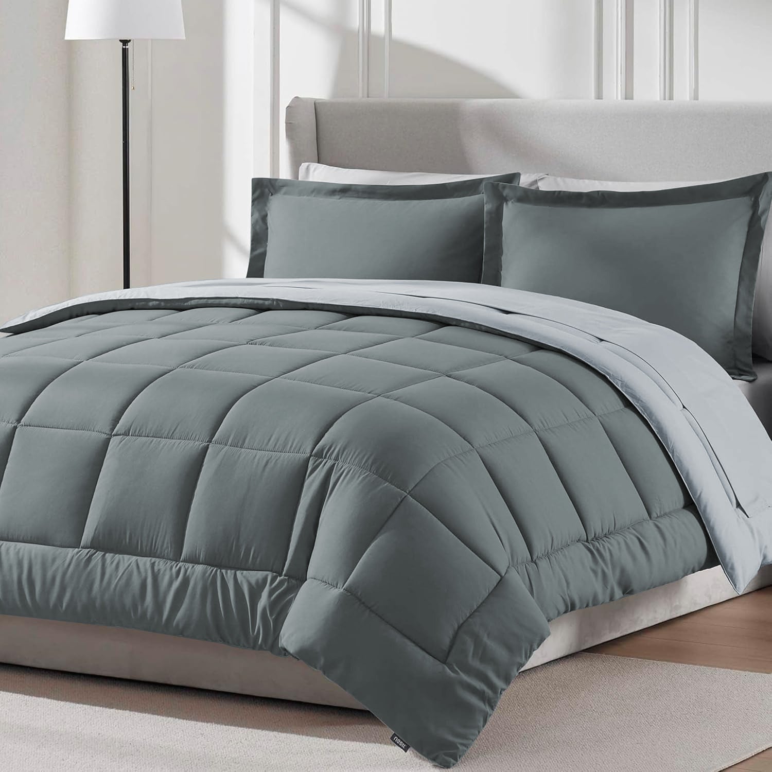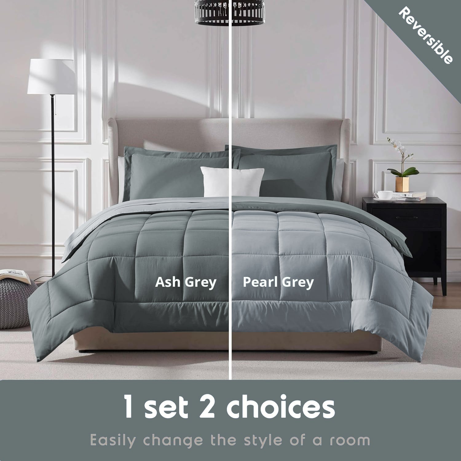 Furbo Microfiber Reversible All-Season Comforters: Soft, Durable, and Versatile, Ash grey- Pearl grey