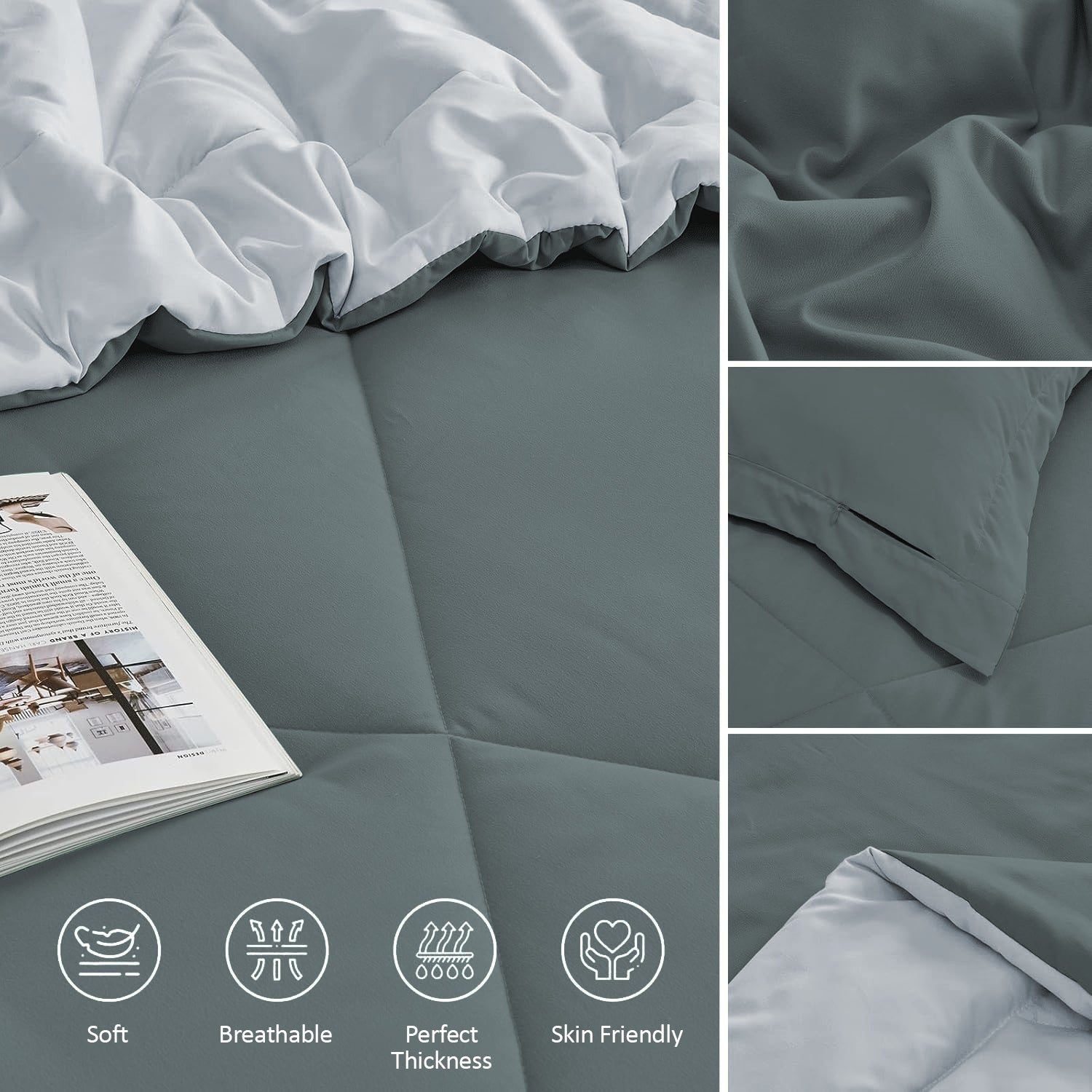 Comfort: All-season reversible comforter; Quilted box design; Moisture wicking; Soft, fluffy, suitable for all weather
