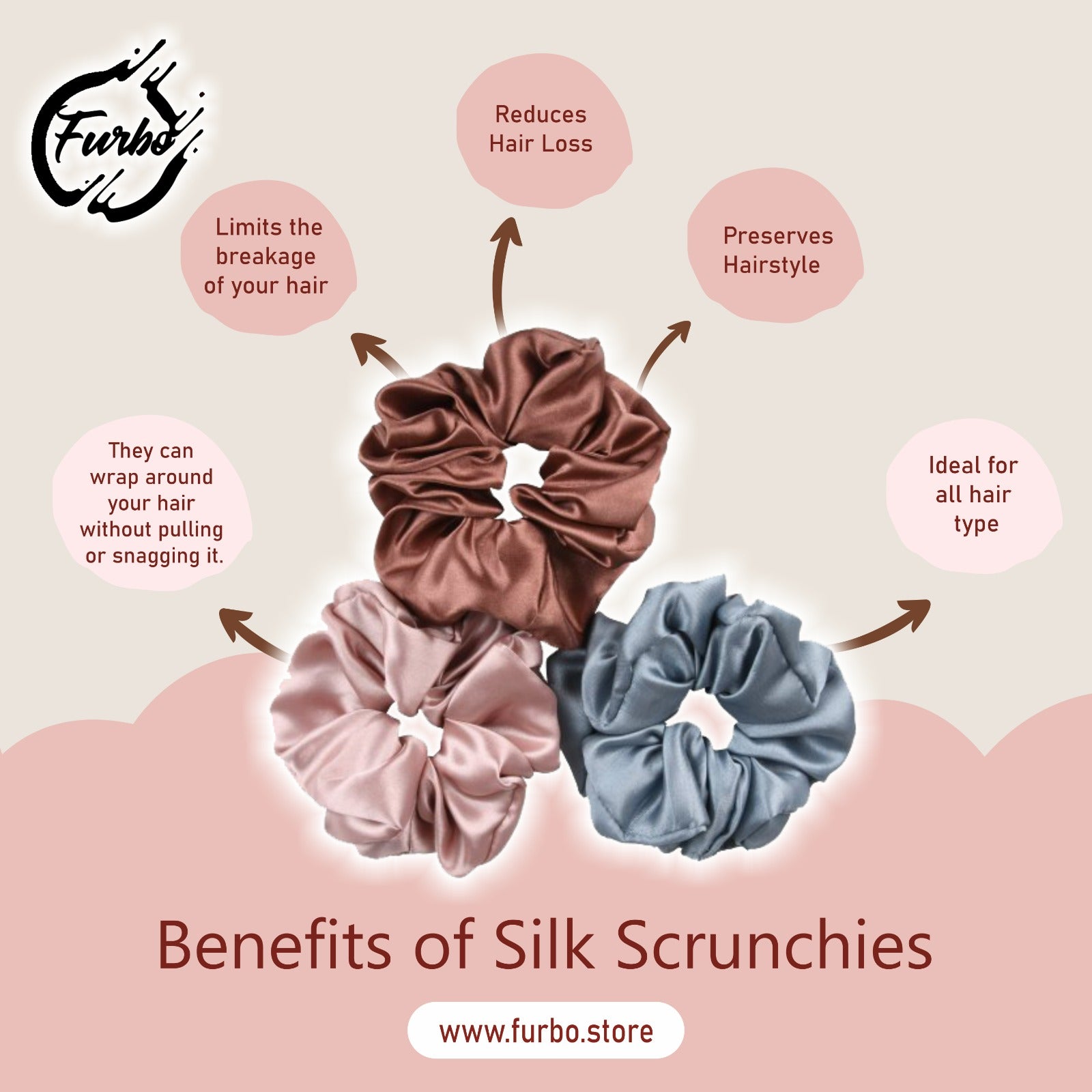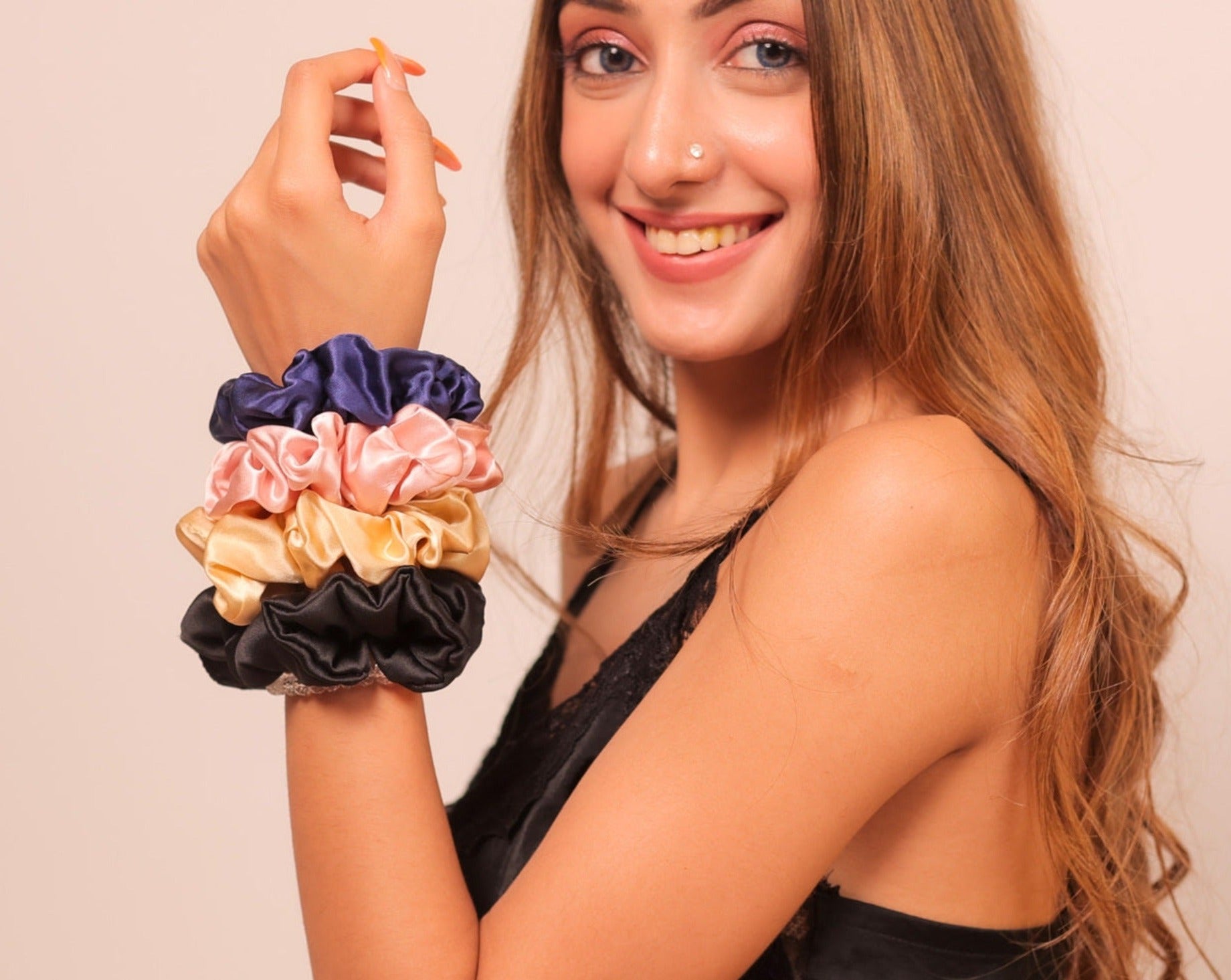 Mulberry Silk Hair Scrunchies (Pack Of 5) (22 Momme, 6A Grade) (Assorted)