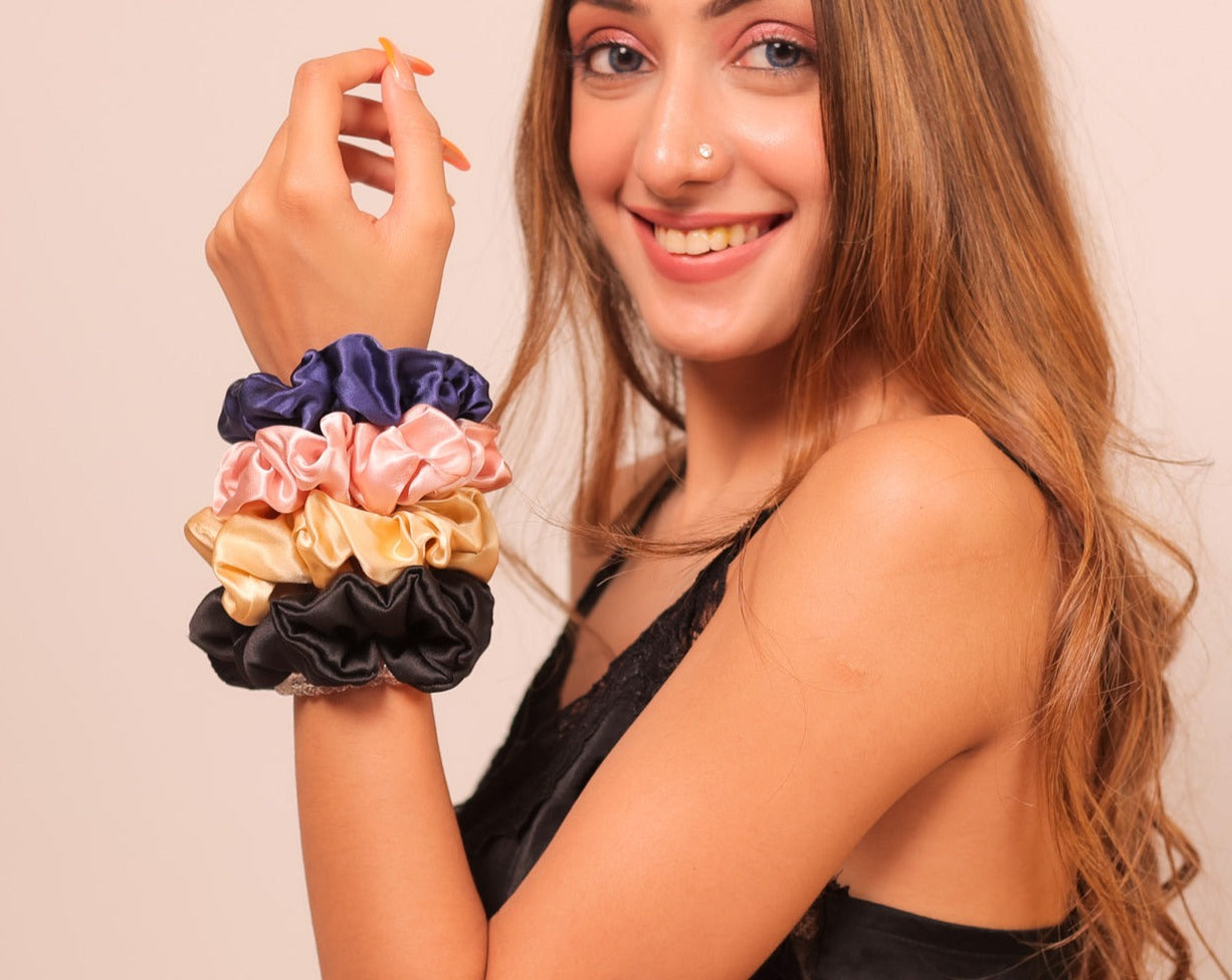 Mulberry Silk Hair Scrunchies (Pack Of 3) (22 Momme, 6A Grade) (Assorted)
